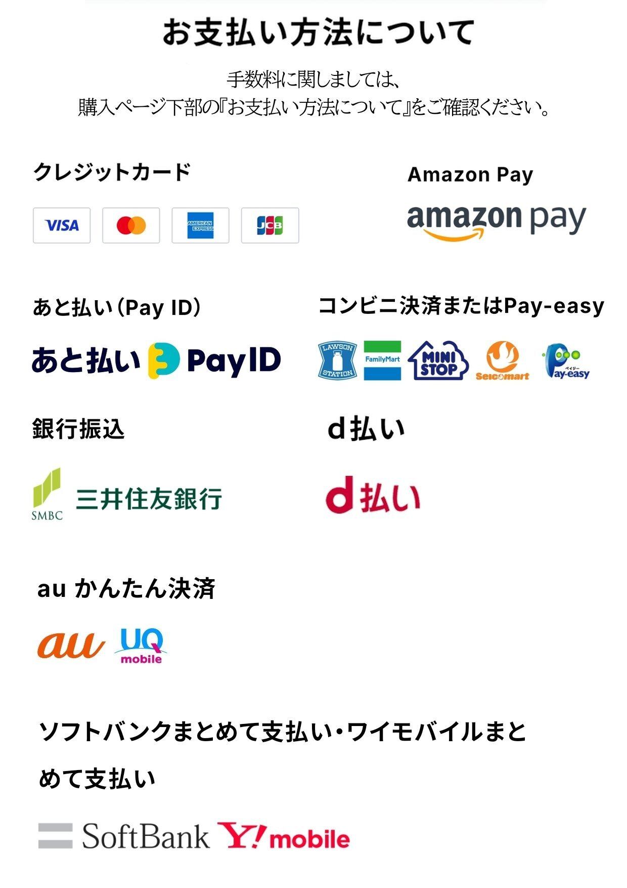 各種クレジット/各種キャリア決済/コンビニ払い/銀行振込